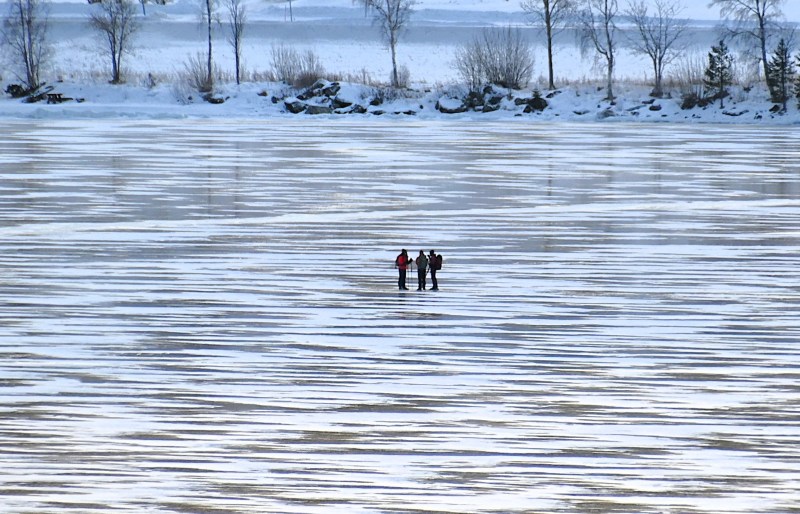 Ivriga långfärdsskrinnare gav sig ut på den relativt nya isen.