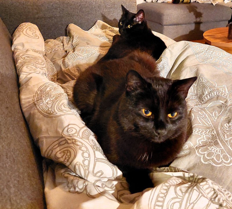 Mina döttrar hade tagit tåget från Örebro men efter begravning och efterföljande samling med förtäring och dryck återvände min son hem med tåg medan jag följde med döttrarna till örebro. Jag sov i soffan hos yngsta dottern och svärsonen och delar av natten fick jag fint sällskap av bröderna Grixis och Pixel.