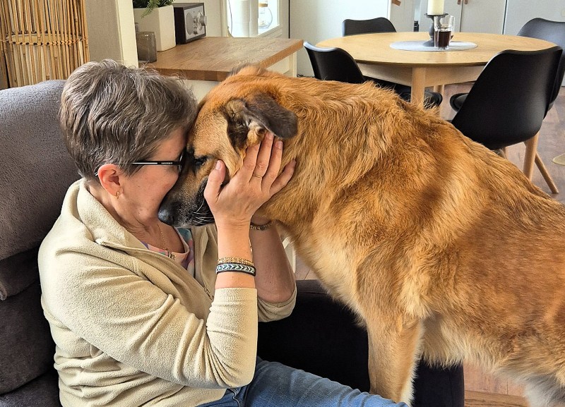 Så småningom åkte jag vidare och jag hade bestämt tid och plats för att träffa min storasyster i Norrköping. Också väldigt trevligt. Jag övernattade utanför Skärblacka och nästa morgon for jag vidare mot Finspång där jag besökte goda vännen, och även bloggvännen, Anki och hennes mysiga vovve Muffin. Muffin älskar alla som vill ha hans kärlek och ni vet ju att jag inte är svårflirtad när det gäller djur.
