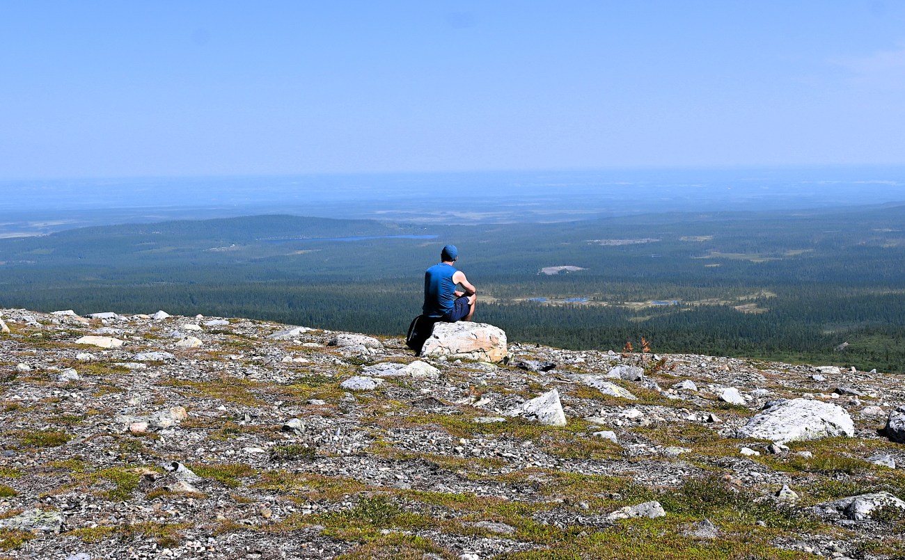 Det var nog på gränsen att kalla den här toppen för en fjälltopp men jag kom faktiskt upp ovanför trädgränsen. Fin utsikt fick jag åt flera håll och som ni förstår så njöt jag verkligen där jag satt en lång stund, åt en del av min matsäck och sedan gick runt lite för att se allt.