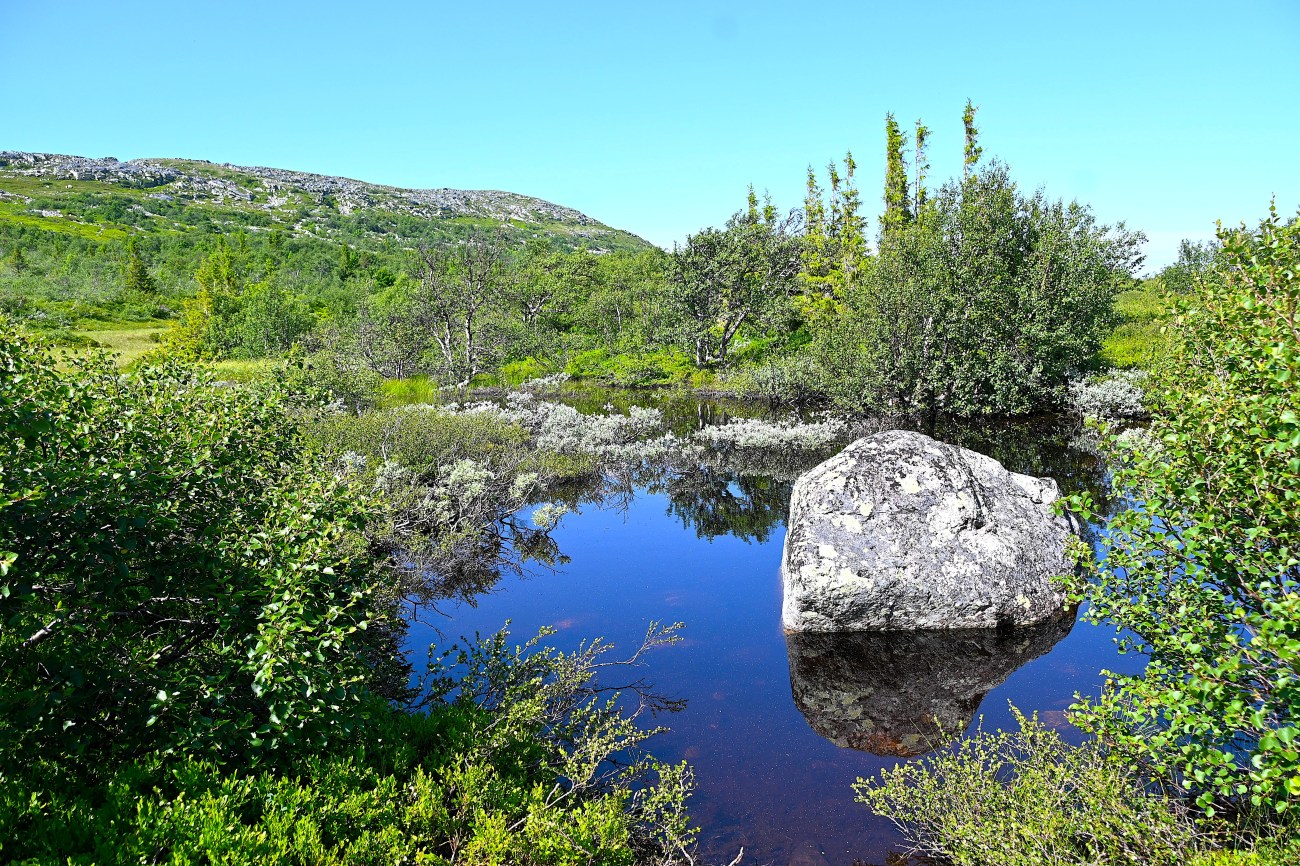 Juli bjöd på en hel del fina dagar och i mitten av månaden kom min son hit och tillsammans for vi till Gräftåvallen för lite skön fjällvandring. Vi började i en slalombacke och sedan var det lättare en bit innan det gick uppför igen. Men sedan var det inte mycket lutning utan bara en fantastisk dag. Vi tog det lugnt och njöt lika mycket som jag och dottern gjorde när vi gick till Soldalen. Sist jag var här såg jag massor av renar men det var förmodligen för varmt den här dagen. De höll sig säkert i skugga lite längre ner i dalen.