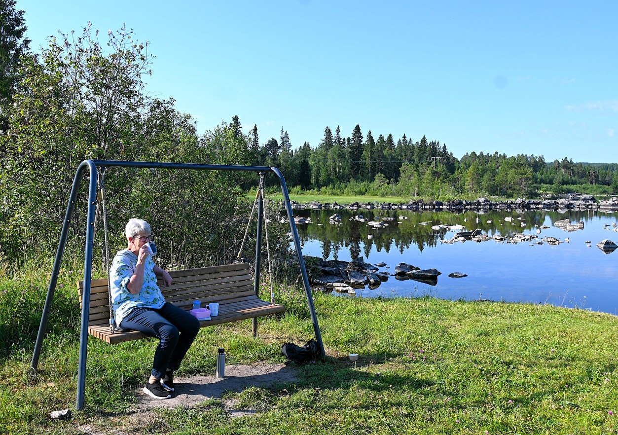 En av mina grannar har också bott i Optand tidigare och när vi pratade en stund en dag så kom vi på idén att göra en liten rundresa runt södra delen av Brunfloviken (en vik i Storsjön). Vi hittade det perfekta fikastället på en lugn, vacker plats där en hammock var utställd. Vi for vidare upp mot Brunflo kyrka och kastalen, där jag vandrade upp för trätrapporna för att få lite utsikt. Min grannes man ligger begravd på kyrkogården där så vi gick ett varv där också. En väldigt fin kyrkogård. Vi tittade till både min grannes hus och mitt f d barndomsparadis som senare blev mitt vuxenparadis. Det var inget paradis längre. När vi bodde där var det strikta regler om strandskydd och bygglov. Något har verkligen förändrats för en alldeles för stor byggnad var på gång alldeles för nära det hus som jag har älskat sedan barndomen. På ett sätt var det nästan skönt för nu försvann all längtan tillbaka. Min granne ville bjuda mig på lunch som avslutning och här på Frösön, restaurang Hos Andreas, var det buffé med en vegansk gryta som ett av alternativen. Gott och trevligt!