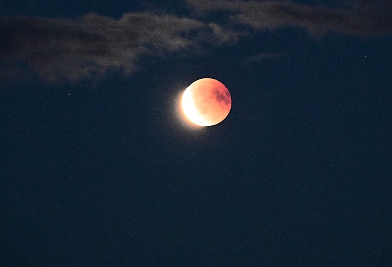 Den 8:e september skullle vi få se en blodmåne. När månen kom inom synhåll från min balkong hade den redan börjat förflytta sig ur den position där jorden skymmer den från solen. Som jag förstår det bryts solens strålar genom jordens atmosfär och det gör att månen ser röd ut.