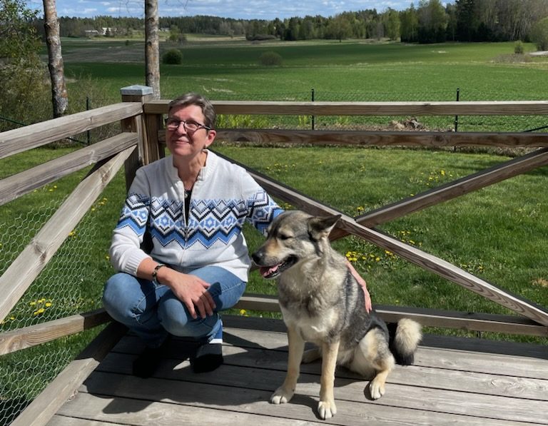 Jag fortsatte mot Strängnäs…igen. Alldeles i närheten av där vi byggde vårt första hus bor nu väldigt goda vänner. Vi har hållit kontakten och det händer att jag hälsar på när jag är i närheten. Här finns det också härliga hundar att få närkontakt med och då trivs jag alltid. Jag och deras matte har planerat en resa in i Norge i sommar och det ska bli väldigt roligt. Här bjöds jag på en supergod vegansk lunch och efter några trevliga timmar åkte jag vidare mot nästa mål.