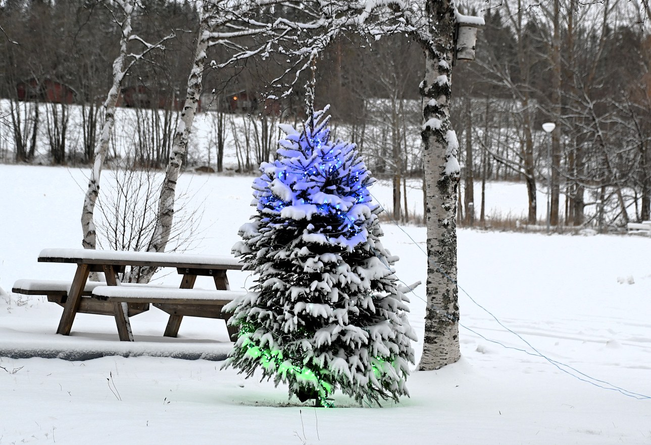 Nu är julen nästan helt utstädad hos mig. Det som återstår är julgardiner i två rum och ljusslingorna på balkongen. Nu är det så fint på balkongen med snö på den ena ljusslingan så den får vara kvar åtminstone januari ut. Men gardinerna hinner jag nog plocka ner i morgon. I morgon eller i övermorgon ska även frysen frostas av för det ska bli ännu några grader kallare. Då är det perfekt att kunna ställa ut maten på balkongen så länge. Det blir t o m kallare än i frysen. Kanske kan jag någon av de kommande dagarna hoppas på att den där halon äntligen ska få alla förutsättningar som behövs. Det vore kul men det finns så mycket annat fint att uppleva förutom väderfenomen.