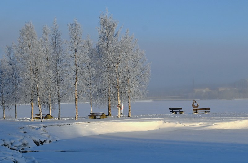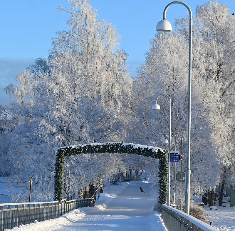 Vilken skillnad det var idag. En kall (runt -20 grader) dag men nästan helt vindstilla och solen sken från en stundtals molnfri himmel. Eftersom jag såg tecken på att det även den här dagen var en halo på gång så valde jag att promenera in till stan. Hem tänkte jag ta bussen för annars skulle jag bli rätt sliten. Återigen var jag helt rätt klädd och kunde njuta av en superhärlig dag.
