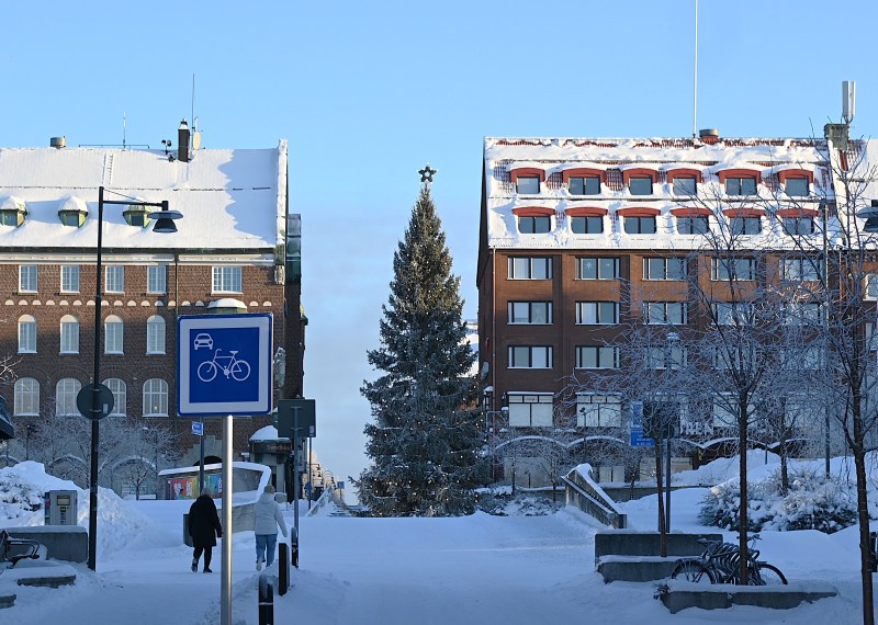 Jag kollade bussturlistan och såg att min buss skulle gå om en kvart och det passade mig perfekt. Jag gick upp mot Stortorget, där julgranden fortfarande står, och fortsatte mot centrumhållplatsen. Det var otroligt skönt att komma in i bussen och sätta mig tillrätta. Då hade jag varit ute i nästan två timmar och det kändes att det räckte. Men jag insåg snabbt att något var fel för busschauffören startade och stängde av motorn flera gånger, gick ut och fixade något på utsidan två gånger men fick ändå inte igång bussen. Vi fick helt enkelt gå av igen. Det var nästan en halvtimme kvar till nästa buss skulle gå (söndag och en sämre busstäthet) och jag bestämde mig genast för att där kunde jag inte stå och bli kall. Jag tänkte att jag skulle ta en promenad över bron till Frösön och hoppa på bussen där. Resan var dragen från busskortet men inom 70 minuter kostar det inget extra att hoppa på en annan buss.