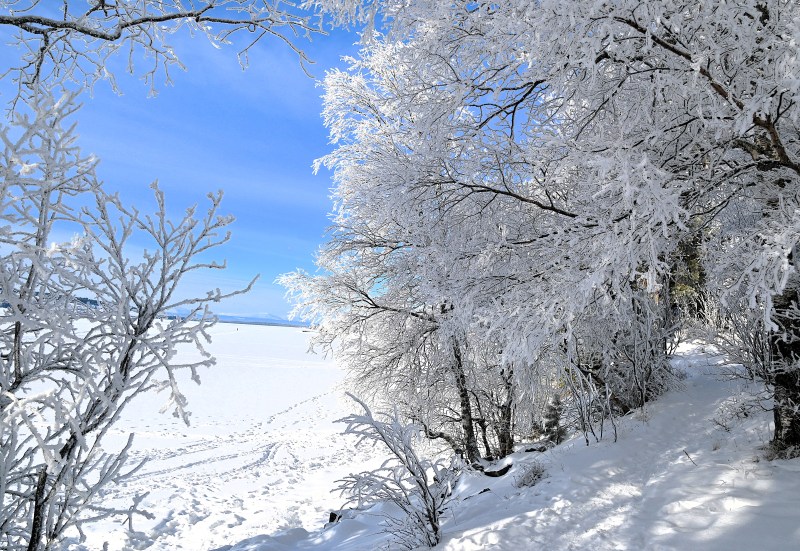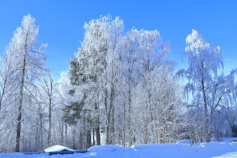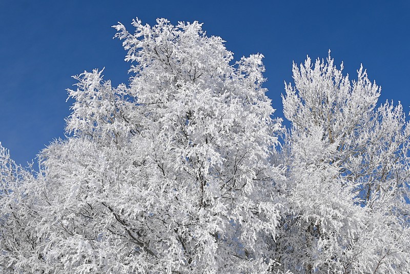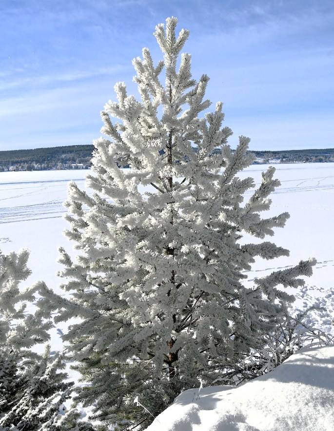 Det är så klart inte säkert men för säkerhets skull så ville jag gå ut igår morse för att inte gå miste om allt det fina. Det var -17 grader på morgonen men jag väntade tills graderna var närmare -10. Det var bra att jag kom ut då för efter lunch var det mesta av rimfrosten borta. Solen och någon plusgrad hjälptes åt med att smälta allt det vita i träden.