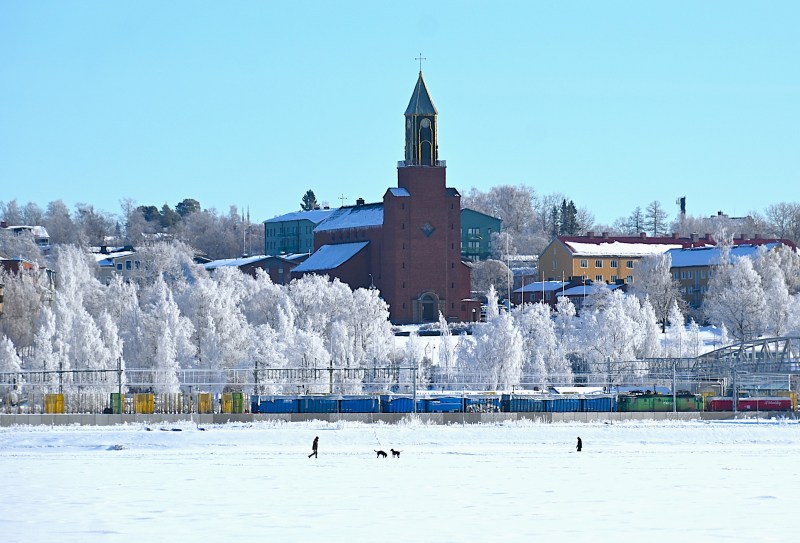 Hittills hade jag gått på stigar på land men efter bron gick jag ut till Medvinden och fortsatte mot Vinterparken. Jag zoomade in på Stora Kyrkan och fick med det gula hus där mina farföräldrar bodde hela sitt gifta liv. De hade ju sommarstugan i Otand också som de byggde på 30-talet och som många år senare blev mitt vuxenparadis (innan hade det varit mitt barndomsparadis).