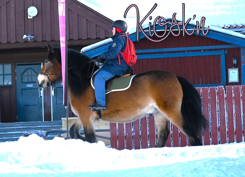 Den var på väg någon annanstans med sin ryttare så jag hade tur som kom precis i rätt tid för att få se den. Hästar är ju fina djur. Jag gillar de här ganska bastanta raserna. När jag har ridit har jag oftast sett till att få en fjording och det har känts tryggt och stadigt. T o m det halvår jag skötte kontoret på ett ridhus fanns det en fjording som jag fick rida på när jag någon gång var med på de anställdas ridlektioner. Ridläraren lät dock mig vara ganska mycket ifred eftersom jag inte var i samma klass som de andra och mest var med för nöjes skull 😀