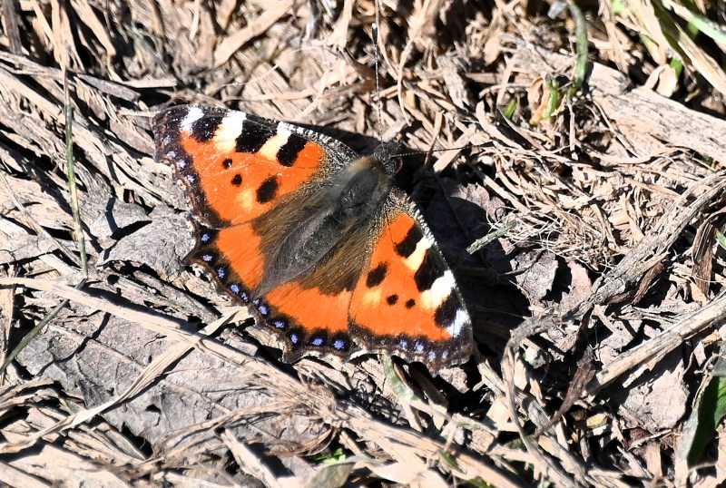 Det har varit några soliga och sköna dagar, när väl minusgraderna har övergått i varmare temperatur. Idag satte sig en nässelfjäril på sidan av stigen och där satt den en stund och njöt av solen. Men vinden tog tag i vingarna då och då så jag kämpade ett tag innan kameran och den vackra modellen lyckades något så när. Fjärilen verkade gilla att få uppmärksamhet för när jag gick vidare flög den om mig och satte sig en bit framför mig igen. Så gjorde den flera gånger innan den gav upp.