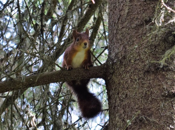 Inne i skogen träffade jag en nyfiken ekorre. Jag blir alltid glad när en ekorre sitter relativt stilla och låter mig fota. Men det var tydligen inte kul att posera för ganska snabbt pep den till och sprang uppför stammen.
