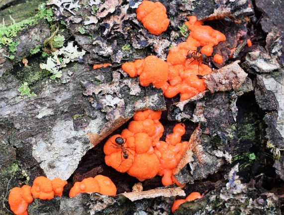 Slemsvampar är ett väldigt intressant och spännande släkte. Jag såg nyligen ett avsnitt av ”vetenskapens värld” som handlade om de häpnadsväckande encelliga varelserna. Trollsmör har jag lärt mig känna igen tack vare bloggvännen Anki och kanske kan det här vara en annan variant, nämligen vargmjölk. Jag är absolut inte säker men jag gissar på det.