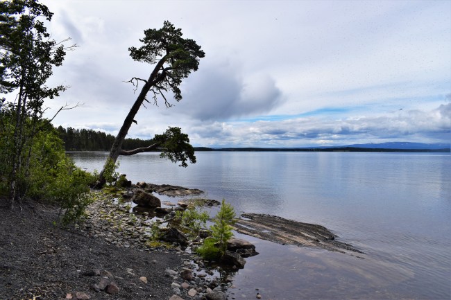 Regnbågen var otroligt vacker och pampig och lite av det lyckades jag fånga med mobilen. Men i verkligheten var det ännu mer imponerande. Storsjön är stor där den är som störst men den grenar ut sig en del och på många platser är man ganska nära ”andra sidan”. Som du har sett är det så där jag bor.