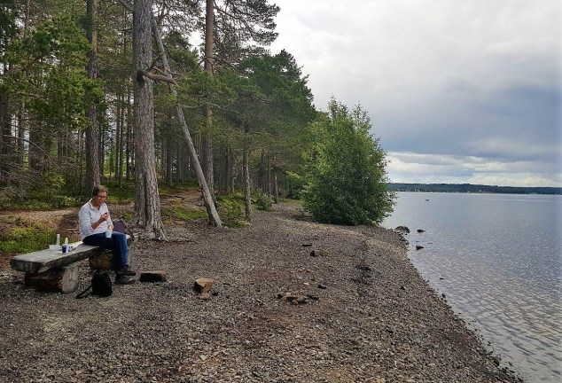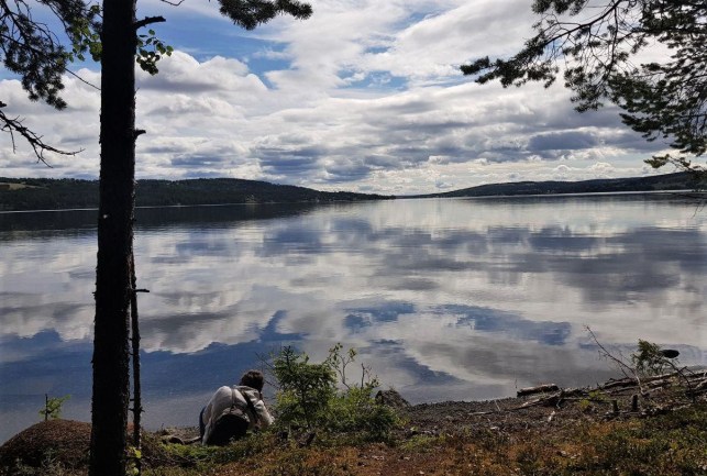 Här är det min dotter som är fotograf och detsamma gäller för alla bilder där jag syns. Om ni undrar vad jag gör så gör jag som jag brukar, dvs försöker komma så nära som möjligt när jag vill fota något. Det var alldeles lugnt och sjön låg mestadels som en spegel.