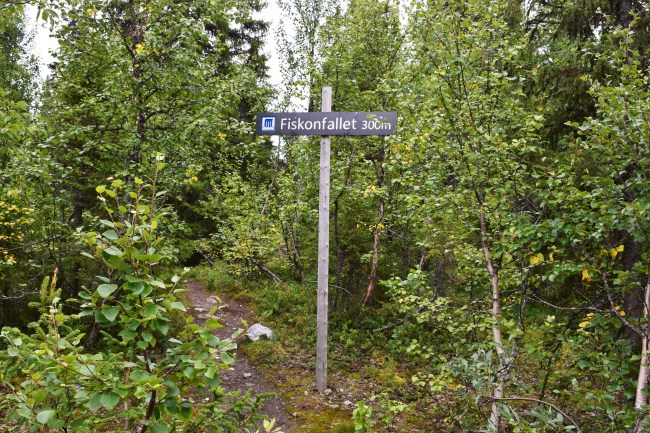 Solen var helt försvunnen och molnen gömde det mesta av fjällen men vattenfall kan man titta på i alla fall. Fjället, som också var i närheten, fick alltså vänta. Fiskonfallet har jag inte sett förut så jag visste inte vad som väntade.