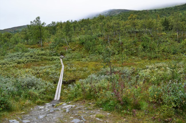 Äntligen nere vid starten igen. En helt underbar upplevelse som jag inte ångrar det allra minsta att jag gav mig själv. Jag trivs som bäst när jag får stå på en höjd och se ut över världen. Men det här var min sista fjällvandring den här resan och kanske på lång tid framöver. Här syntes toppen och det var bara den allra sista kullen jag inte klarade. Lite irriterande nu i efterskott men när jag stod där och såg upp mot den branta stigen var det ett helt självklart val.