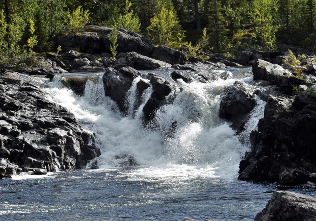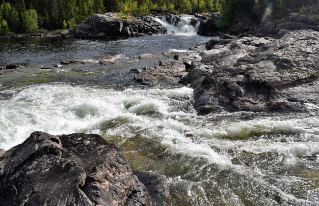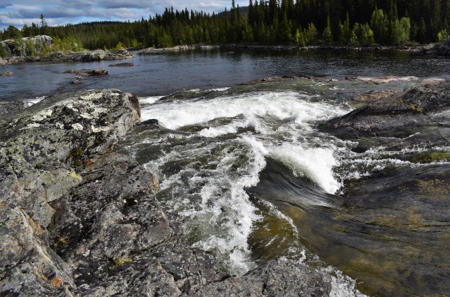 Jag trodde att jag hade sett allt jag skulle vid det här laget och ställde in GPS:en mot Saiva camping, där jag hade en stuga bokad. Men lite senare stannade jag till vid Litsjöforsen för att titta på ännu mer strömmande och forsande vatten. När man åker i de här trakterna är en vanlig sjö, som Storsjön, ganska intetsägande. Lite dramatik i landskapet och hur vattnet får olika skepnader och former gör stor skillnad. Jag har åkt förbi många små sjöar där varken berg, fjäll eller rörelser i vattnet ger något extra. Jag har nog blivit lite kräsen under den här resan för jag har inte känt någon dragning till att stanna då.