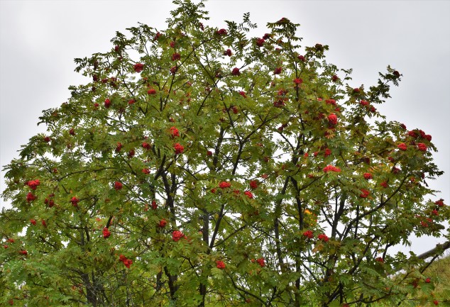 På en del håll i landet verkar det vara ont om rönnbär men här finns det gott om dem…på vissa träd.