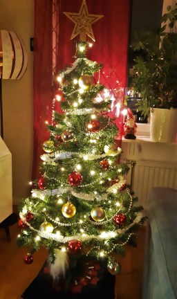 Min man kunde inte tänka sig en plastgran, han jobbade ju i skogen. Men jag tycker att det är bekvämt och bra. Jag avvek från traditionerna den här gången men nästa jul hoppas jag att allt är som vanligt.