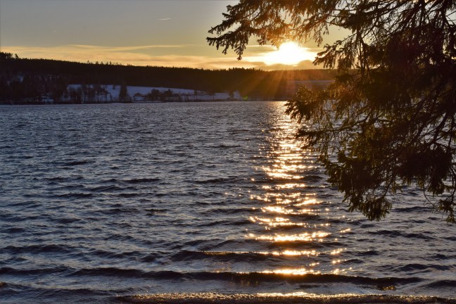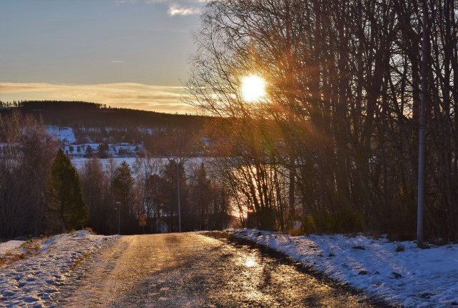 Jag vet inte om jag håller med om att det är särskilt vackert men kanske lite bättre än när det är helt snöfritt. Men man blir glad när solen kommer fram 😀