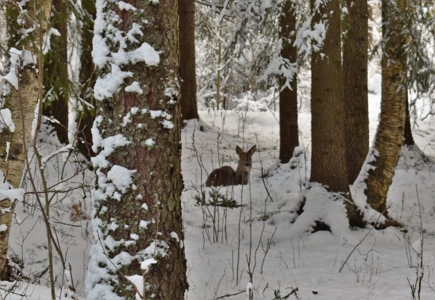 2. Helt magiska foton, tack speciellt för dem! Visst är väderomslag bland det häftigaste man kan uppleva, särskilt när det går sådär blixtsnabbt! Jag ser inte ens rumpan på rådjuren men jag ser deras trippande spår i det tunna snötäcket vi har där de har gått under fågelmataren och letat.