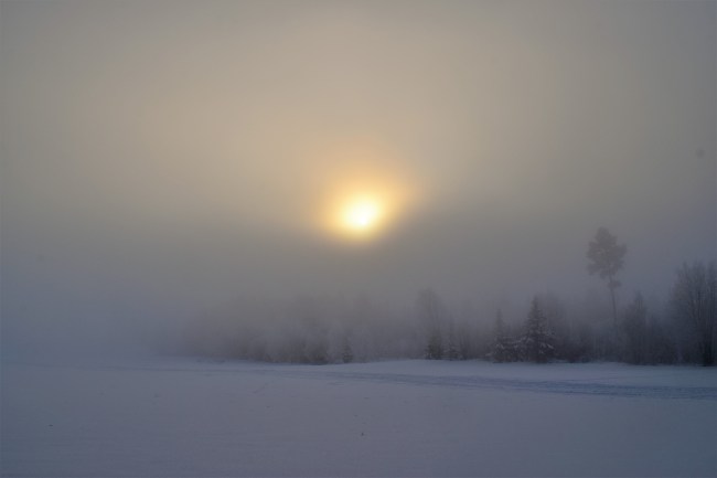 Det var en häftig kombination av förhållanden. Dimma åt ena hållet och ett strålande vackert vinterväder åt andra hållet.