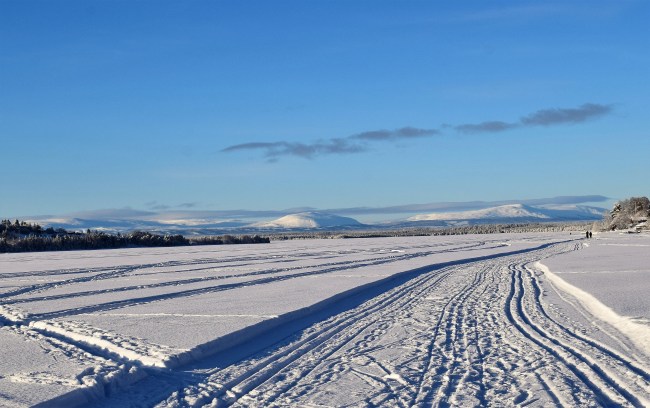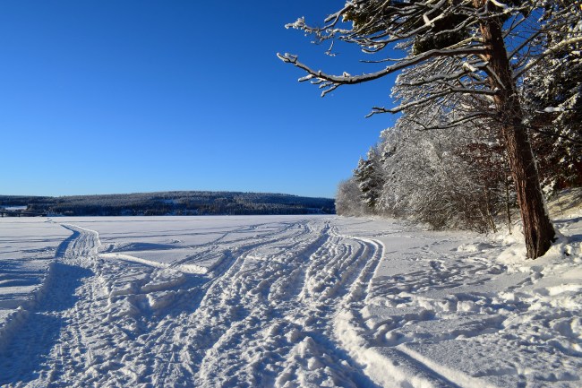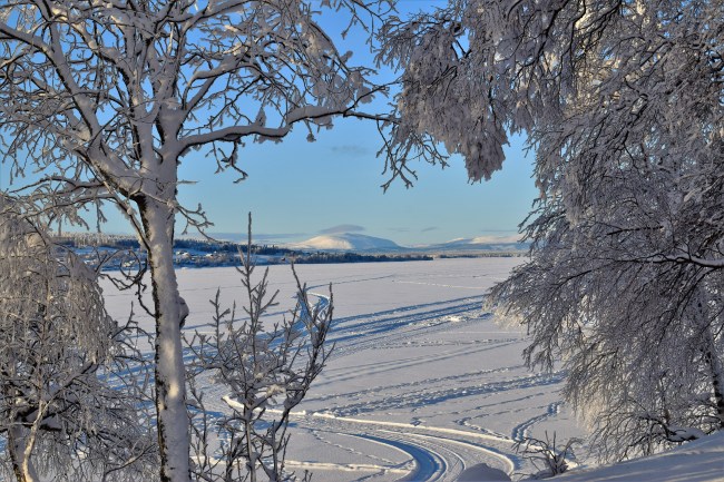 Jag gick ner till sjön för att se efter om det fanns bra spår att gå i på min väg hem. Här skulle jag kunna gå tvärs över till ”Annersia” men det var inte lika fina spår åt det håll jag skulle gå.
