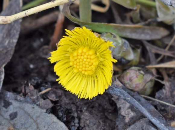 Sex dagar tidigare än förra våren hittade jag denna och andra tussilago. Genast dök samma sång som då upp i min hjärna och den gick på repeat hela vägen hem. Precis som det brukar vara när jag hittar årets första tussilago. Sången heter ”Lilla tussilago” men den här gången lägger jag inte ut texten.