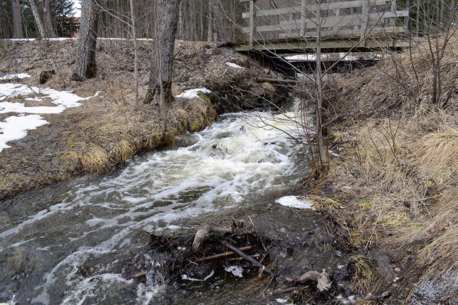 Vårfloden ser ut att ha kommit igång i Mjällebäcken. Det blir totalt fyra vårtecken som jag har redogjort för här och det känns ganska tidigt. Nu dröjer det nog inte länge innan det dyker upp blåsippor och vårfåglar.