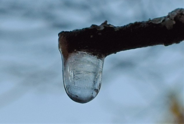 I morse var det precis noll grader när jag gick iväg och den här vattendroppen hade inte tinat än.