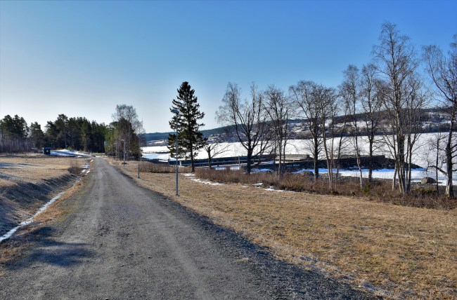 Vid skylten var det dags att vända hemåt och jag njöt av härligt väder och diverse fåglars sång. En fågel har jag försökt identifiera och med hjälp av min fågelkunniga svärmor har jag landat i att den låter som en göktyta. Men den ska inte komma förrän i maj så jag har förmodligen fel. Storleken stämmer och om det ändå är den så har den varit här i minst en vecka. Tranor hörde jag i alla fall för första gången i år men trots att jag passerade stora fält varken hörde eller såg jag någon storspov. Jag måste nog åka iväg för att hitta den.
