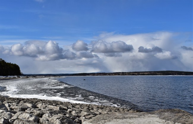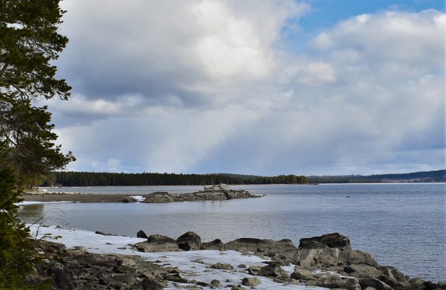 I morse hade jag tid för däckbyte och när jag ändå var ute och luftade bilen ville jag ta mig till något område där jag inte har promenerat på länge. Jag chansade på att stigarna på Andersön skulle vara relativt snöfria och styrde bilen dit. Men jag tänkte inte gå samma runda som vanligt utan stannade mycket tidigare, där ön är som smalast, för att undersöka hur det är att gå där. Jag började på den östra delen och blev glatt överraskad över att det fanns en så fin stig och att det bara fanns enstaka snöfläckar. De gav mig inga problem och jag njöt av att hela tiden gå längs sjökanten och se nya vyer från den plats som är så full av minnen.