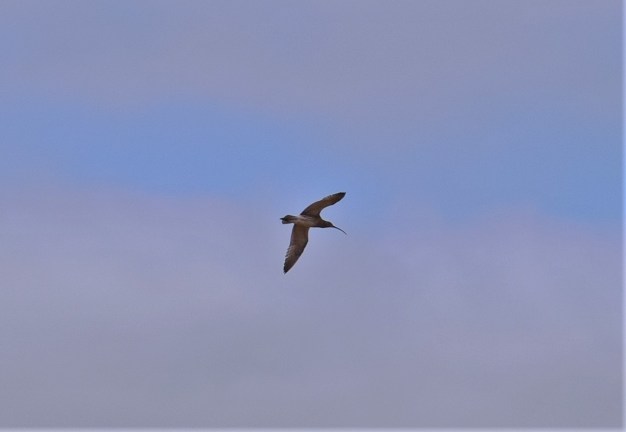 Kraftigt dissocierande kom jag hem men vilken tur att jag hade något trevligt att bryta av med lite senare. Vad roligt det var att få svänga ner till Optand och åka ner avtagsvägen till fd grannar. Jag hade fått rapport om att de har hört storspoven och i dag passade det bra med en promenad bort till deras häckningsområde. Vinterjackan var på och det var skönt i blåsten. När vi närmade oss lägdorna där de brukar finnas spanade vi åt alla håll och efter en stund såg jag en liten figur på ganska långt avstånd. Jag försökte komma nära men storspoven var inte så pigg på att stifta närmare bekantskap med mig. Bilderna är tagna på långt avstånd och är kraftigt beskurna så de är inte av bästa kvalitet. Men de får vara med ändå. Det bästa med att de flyger iväg när man kommer för nära är att då får man höra deras speciella sång.