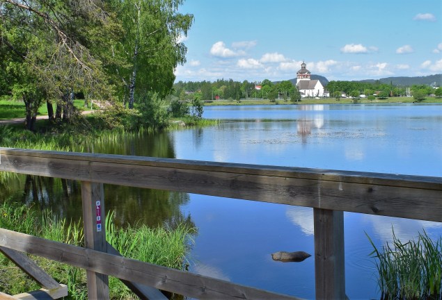 Jag lämnade Simeå strax efter nio på morgonen och efter 25 minuter var jag framme i Bollnäs. Lite tidigt för en paus kan man tycka men jag ville gå runt den sjö vi så ofta hade stannat vid och promenerat runt med våra hundar. Självklart hade jag kollat om det fanns några stolpar i närheten av rastplatsen också och hittauts karta visade att det fanns gott om dem. Men det är svårt att kalla letandet för stolpjakt eftersom jag inte såg till en enda stolpe. Jag letade länge för att hitta denna första ”stolpe”, som bara var en klisterlapp på broräcket. Jag kom från fel håll och dessutom var jag inställd på något annat än en liten klisterlapp. Men sedan gick det lättare. I ett fönster var ”stolpen” ett A4-papper men oftast var det klisterlappar. Jag hittade nio lappar innan jag gav upp pga en jätteblåsa på ena hälen. Det var inte så roligt att fortsätta när varje steg smärtade.