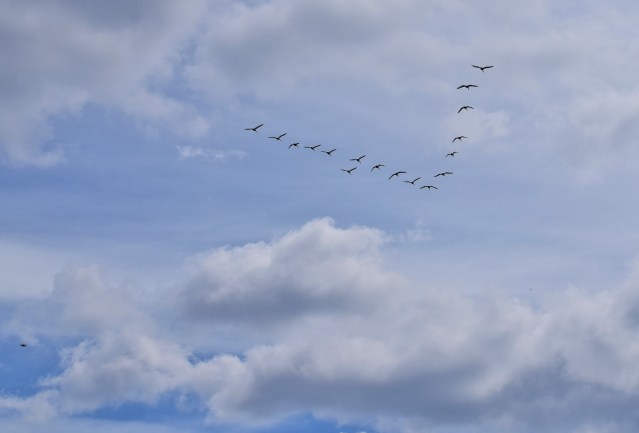 På väg tillbaka till bilen kom plötsligt en flock svanar flygande över oss.