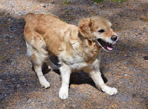 Ja, vi var beredda på reträtt om vi såg minsta tecken på något som liknade kor 😀 Men som tur var kunde vi ta oss till den led vi ville komma till och även på tillbakavägen gick det bra. Hundarna och katten är både väldigt fina och trevliga till temperamentet, precis som de flesta goldisar är 😀 Tack Znogge.
