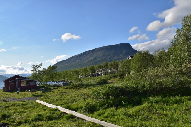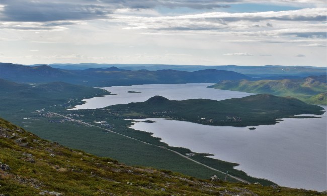 …för att försöka få en bild på Kilpisjärvi. En liten ort som enligt guiden på gårdagens båttur har ca 130 fastboende invånare. Desto fler är de när turisterna översvämmar området.