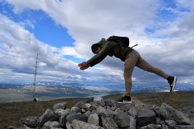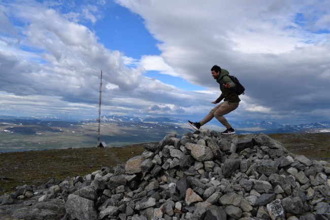 Min son har insett att han behöver balansträning och var finns det en bättre plats för sådan träning än på toppen av ett fjäll 😀