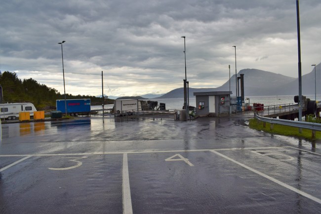 Här tog det stopp en stund. E6:an fortsätter med färja, vilket vi hade full koll på.