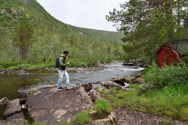 De norska fjällen har attityd! Inte lite lagom som på svenska sidan, utan helt klart lite tuffare, mer utmanande, lite mer ”se på mig”. Fantastiska foton, jag har bara besökt Norge en gång och då långt söderut runt fjordarna kring Bergen och Lillehammer. Men landskapen är magiska oavsett var man är i det landet! Sen var inte jag så imponerad av prisbilden eller av matutbudet i affären, men detta var ju en herrans massa år sedan. Ni är så himla söta och rara ihop du och sonen. Skulle jag ta dottern med på en resa skulle vi säkert ha samma arbetsfördelning som ni har! Kram