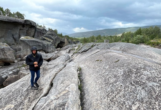 Vi körde vidare och nästa bensträckare tog vi vid en rastplats nära en nästan torrlagd älv, Sagoelva. Det var rejäl och byig vindstyrka och ibland kändes det som om jag skulle blåsa omkull.