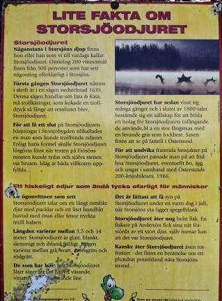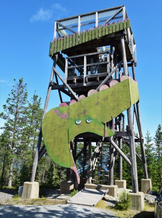 Utsiktstornet vaktas av något som ska föreställa Storsjöodjuret. Men min bild av odjuret är att det är ett snällt odjur som inte äter upp människor. Hennes son Birger är dessutom uppfostrad i samma anda och hjälper alltid till vid större evenemang som en maskot för staden. Ni som tittar på exempelvis skidskytte har säkert sett honom, antingen livs levande eller som ett litet gosedjur vid skyttebanan.