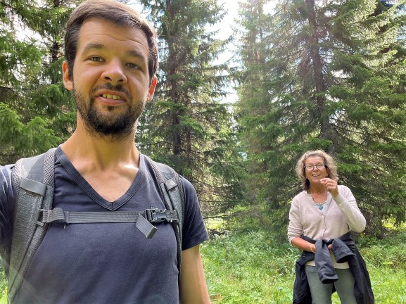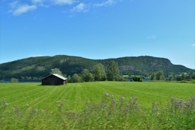 Även om resan norrut var slut så fanns det ingen anledning att göra ingenting. Min son hade bokat tåg närmare halvsex på onsdagskvällen och vi hade nästan en hel dag på oss att hitta på något. Jag frågade om det var något särskilt min son ville göra. Kanske något som han ville återse och som påminde om uppväxten här i Jämtland. Vi pratade bl a om Hoverberget och den stora grotta som finns där men det lockade inte riktigt. Hoverberget kändes kul att åka till även om vi inte ville göra ett besök i grottan. Min son letade lite på nätet och såg att det finns leder att vandra på och att vi kunde parkera vid hembygdsgården och gå därifrån. Vandring i uppförslut igen alltså men det var i alla fall inte ett fjäll vi skulle bestiga utan bara ett berg.