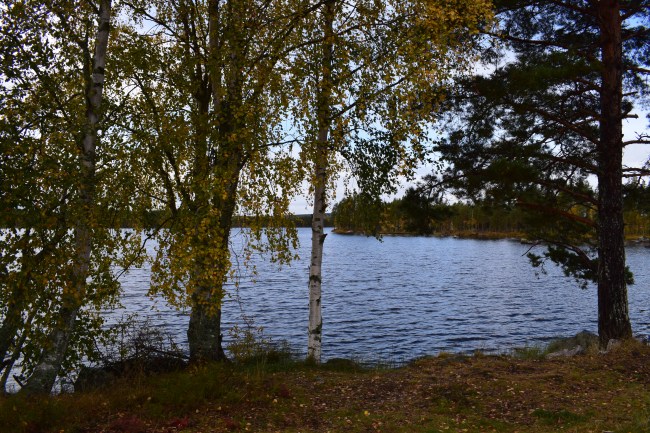 När jag hade passerat Los lättade det tunga molntäcket lite och en liten stund skymtade jag faktiskt solen. Som på beställning kom jag just då fram till en p-ficka vid en sjö och gick ut och sträckte lite på benen. Väldigt skönt och välbehövligt. När jag körde iväg igen började det åter regna så lite tur hade jag.