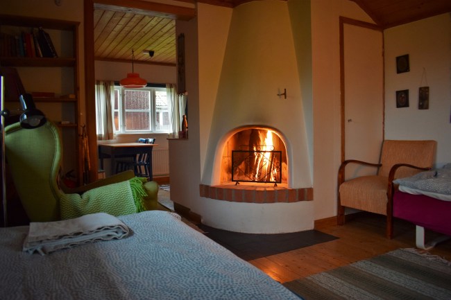 Stugan ser verkligen mysig ut och så härligt med en öppen spis när det kändes lite kyligt.