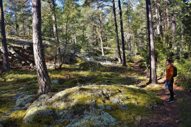 Visst ser det härligt ut? Jag njöt av att vandra fram på fina stigar med mycket mossa och luft mellan träden och att ibland komma upp på stenhällar eller in i tätare skog med mycket rötter på stigen.