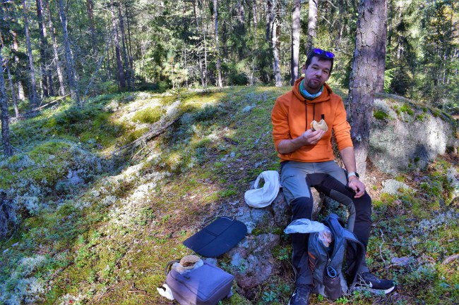 Strax före sju på morgonen gav jag mig iväg från stugan utanför Leksand och knappt tre timmar senare kom jag fram till Uppsala och kunde plinga på i porttelefonen hos min son. Vi var båda helt inställda på att komma ut och promenera någonstans i naturen och medan vi drack kaffe kollade vi på de förslag min son hade. Vi bestämde oss för att åka till ett naturreservat en kort bilresa bort. Matsäck måste man ha med sig och det blev ett gäng mackor med allt möjligt gott på. Kaffe och varsin liten kaka packades också ner.