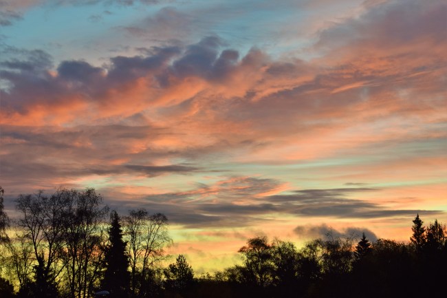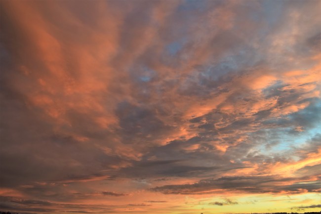 1. Åter ett bevis på hur lönsamt det kan vara att stiga upp med tuppen, eller helst en stund innan! Då var den dagen räddad, för man kan leva länge på de färgerna på himlen! Vet inte vad som skulle krävas för att jag kom upp i tid…
