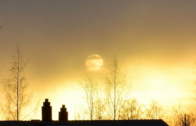 Solen gör sitt allra bästa och efter att ha försvunnit en stund igen lyckades den så småningom vinna över dimman.